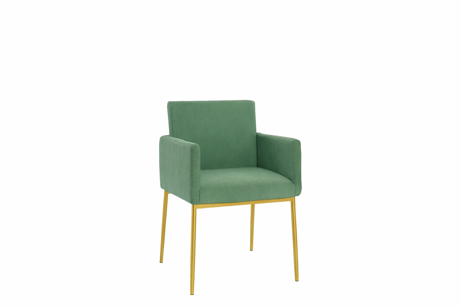 Miękkie, welurowe obicie pięknie odbija światło, nadając meblowi charakter, a złota podstawa dodaje mu wyrafinowanego, dekoracyjnego akcentu. Ergonomicznie wyprofilowane oparcie oraz wygodne siedzisko zapewniają wysoki komfort użytkowania, dzięki czemu krzesło sprawdzi się zarówno przy stole w jadalni, jak i jako element salonu, toaletki czy przestrzeni komercyjnych.