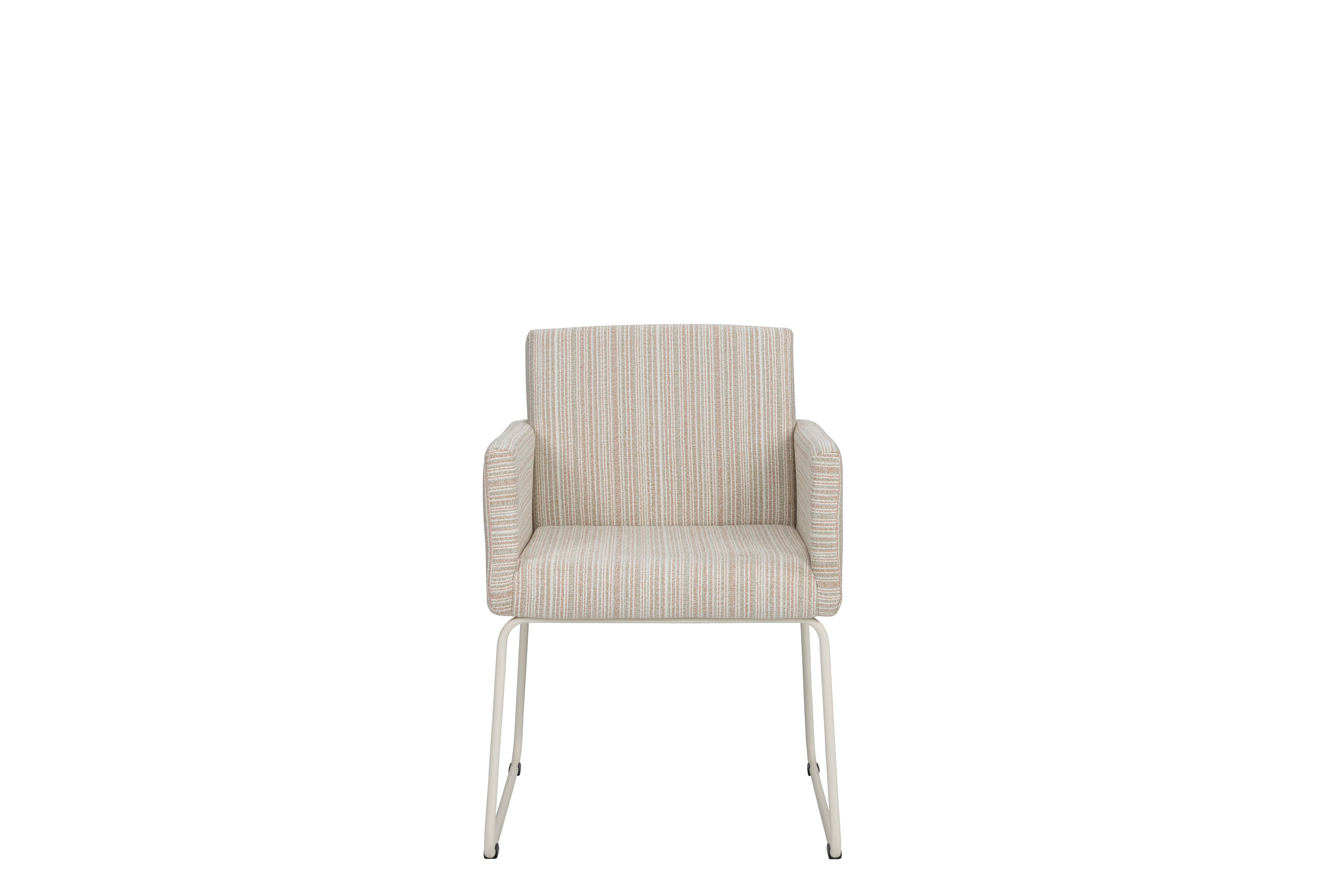 Tkanina LAND z wzorem różnorodnych pasów. Land został wykonany z poliestru z recyclingu tkanin. To tkanina o wzorze nieregularnych pasów, które tworzą odcienie kremu i beżu oraz jeden kolor dominujący (niebieski, zielony, żółty, koralowy oraz taupe). Nazwa tkaniny nawiązuje do krajobrazów, które mienią się najczęściej paletą barw występujących w kolekcji.