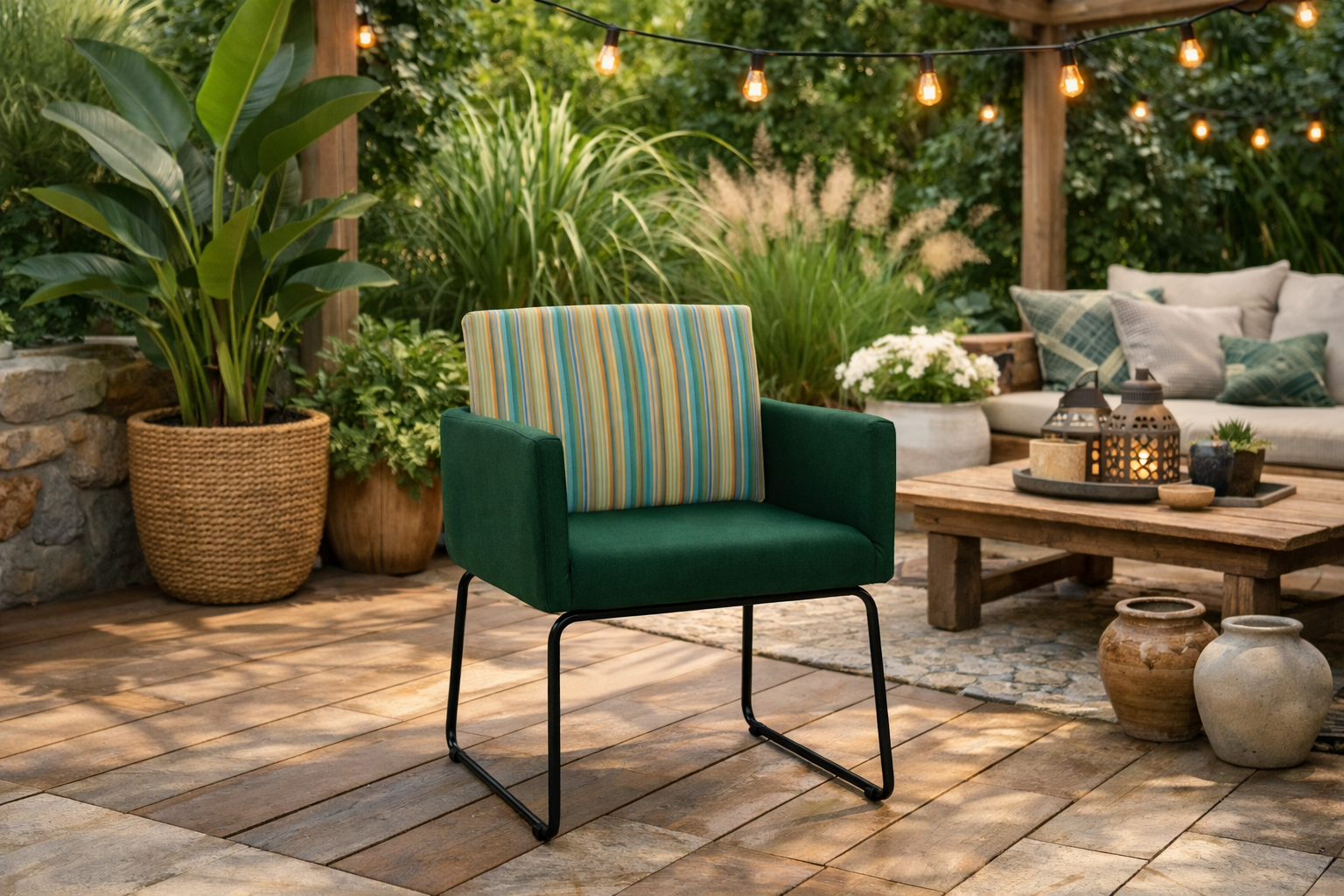 Materiały są odporne na promieniowanie UV, wilgoć i zabrudzenia, co czyni krzesło doskonałym wyborem na każdą pogodę.